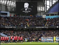 Городскому дерби на "Этихад" в воскресенье предшествовала минута молчания в память о 46-летнем Хаттоне, который был найден мертвым у себя дома в Манчестере ранее днем.