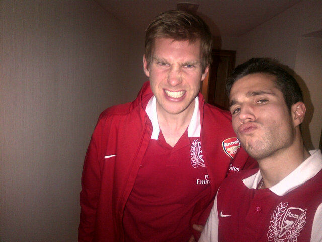 Нападающий "Арсенала" Робин Ван Перси опубликовал в своем Твиттере реакцию на то, что его сборная Голландии при жеребьевке Евро-2012 попала в одну группу с Германией своего одноклубника Пера Мертезакера. (Прочие)