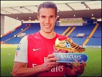 Нападающий "Арсенала" Робин Ван Перси за свои 30 голов получил "Золотую бутсу", которая достается лучшему бомбардиру каждого сезона Премьер-Лиги.